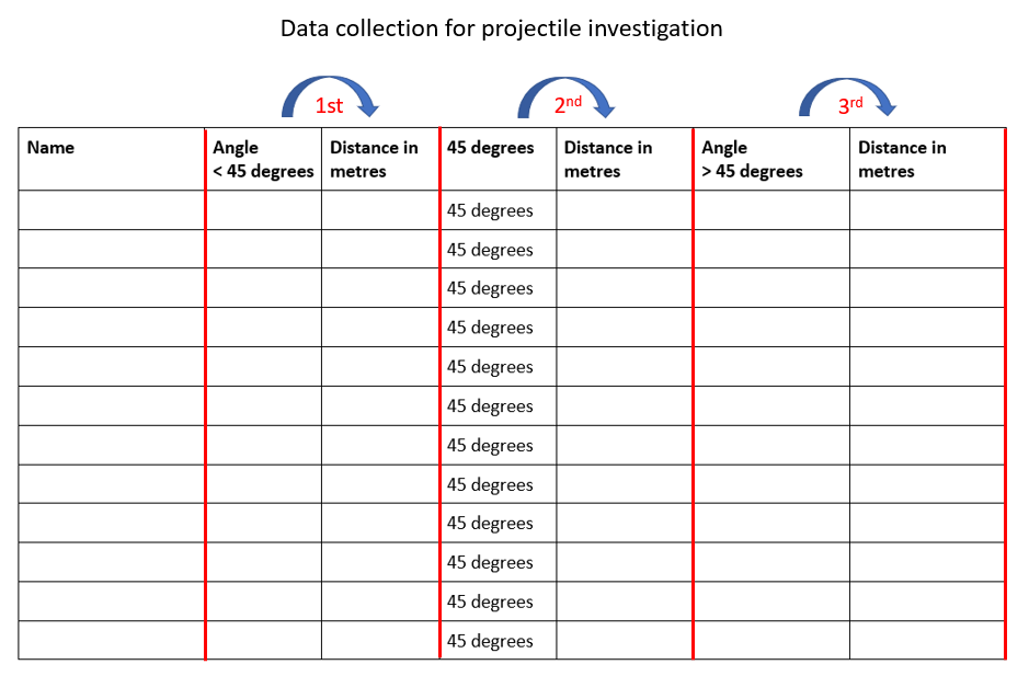 Note: Although 45 degrees should give you the greatest distance, in sports such as golf you would also need to consider that rolling is part of your objective as it is about where the ball lands, but also, where the ball comes to rest. Due to the design of various gold clubs (such as drivers) the angle is often much smaller than 45 degrees.