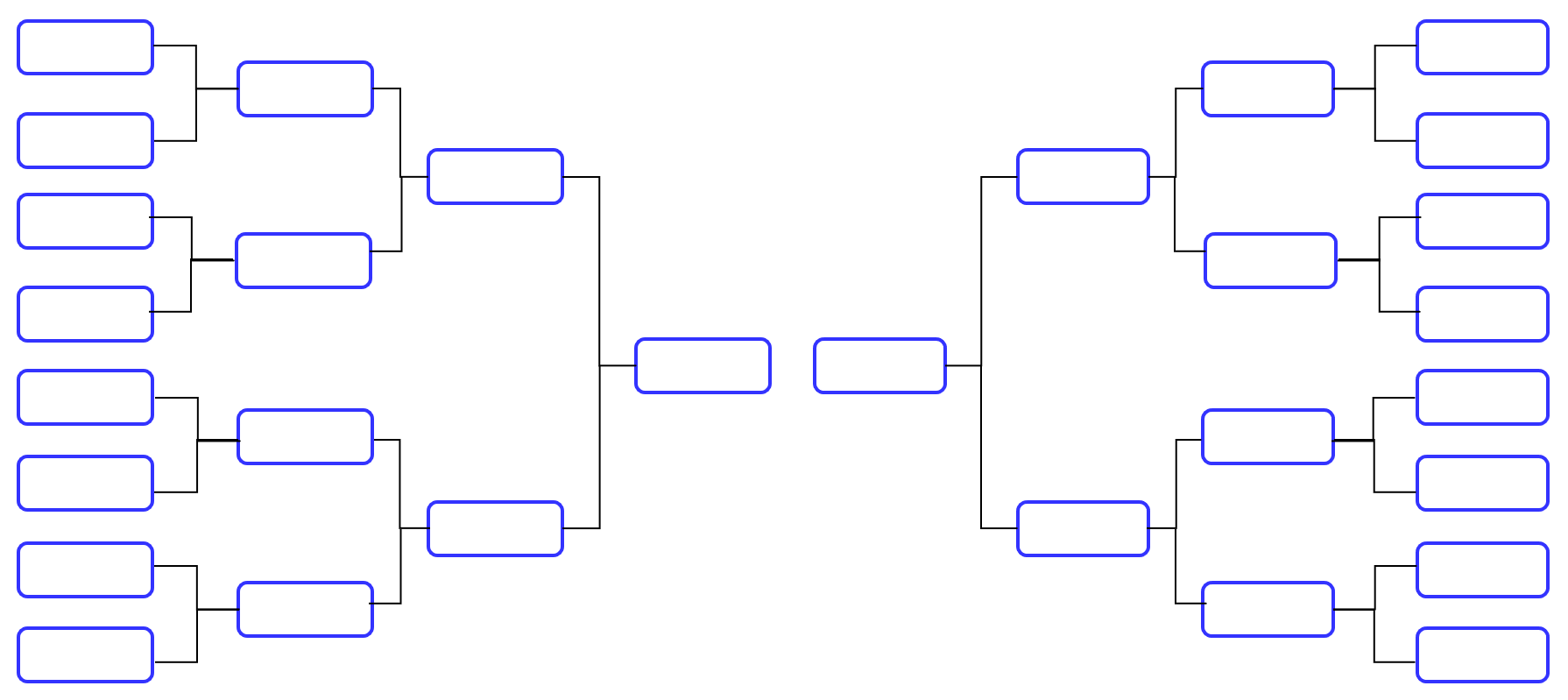 The following chart is for competitions where 16 players are reduced down to 8, 4, 2 and then 1. Your challenge is to come up with ways to incorporate more than 16 players such as 19 or 20. Most classroom have more than 16 students so think of how you could include all students using the same idea of two players competing together. A good context for this activity is the game Rock, paper, scissors.