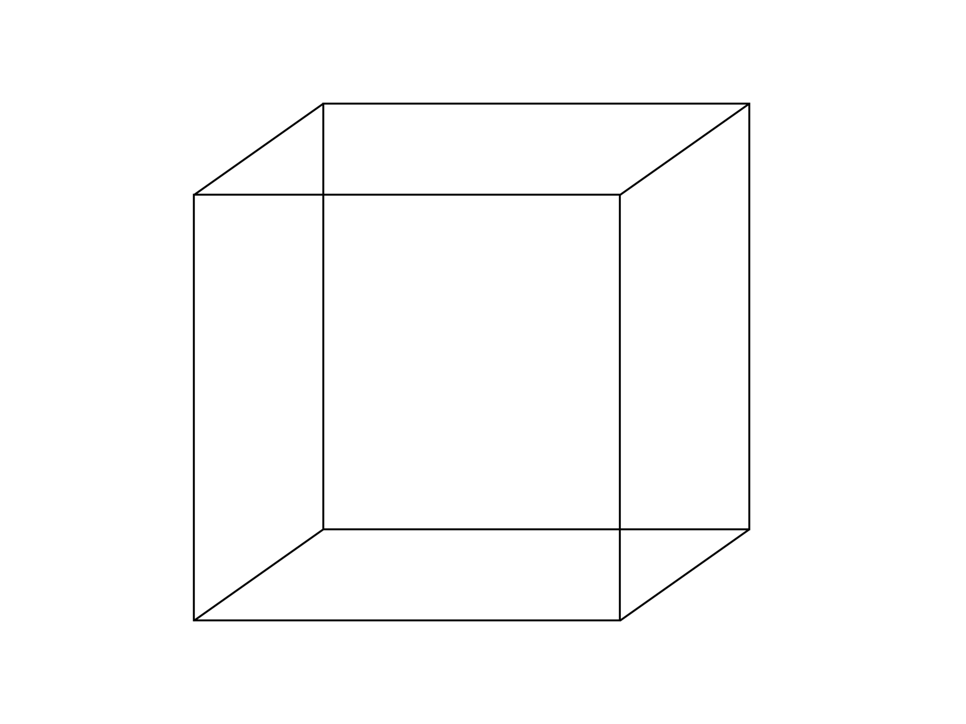 The Necker cube is an optical illusion first published in 1832 by Louis Albert Necker. It is a simple two-dimensional drawing of a cube with no visual cues as to its orientation. This means that it can be interpreted to have either the lower-left blue face or the upper-right grey face as its front side. Your challenge is to re-create this animation using shapes (i.e., squares) and lines to provide depth. Copy and paste your imagery whenever you can. The advantages of doing this are twofold.