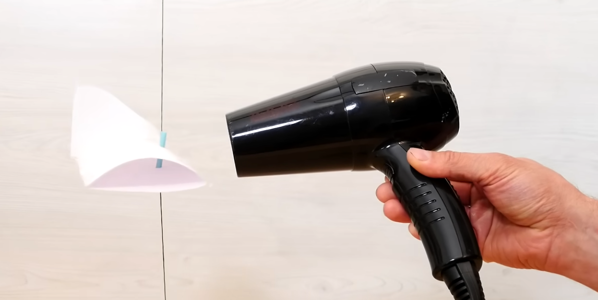 As you can see in this screenshot, a hair dryer or fan is required to test it out. The presenter makes reference to Bernoulli's principle. As is states in the Wikipedia article about Bernoulli's principle, "While the equal-time explanation is false, it is not the Bernoulli principle that is false, because this principle is well established; Bernoulli's equation is used correctly in common mathematical treatments of aerodynamic lift".