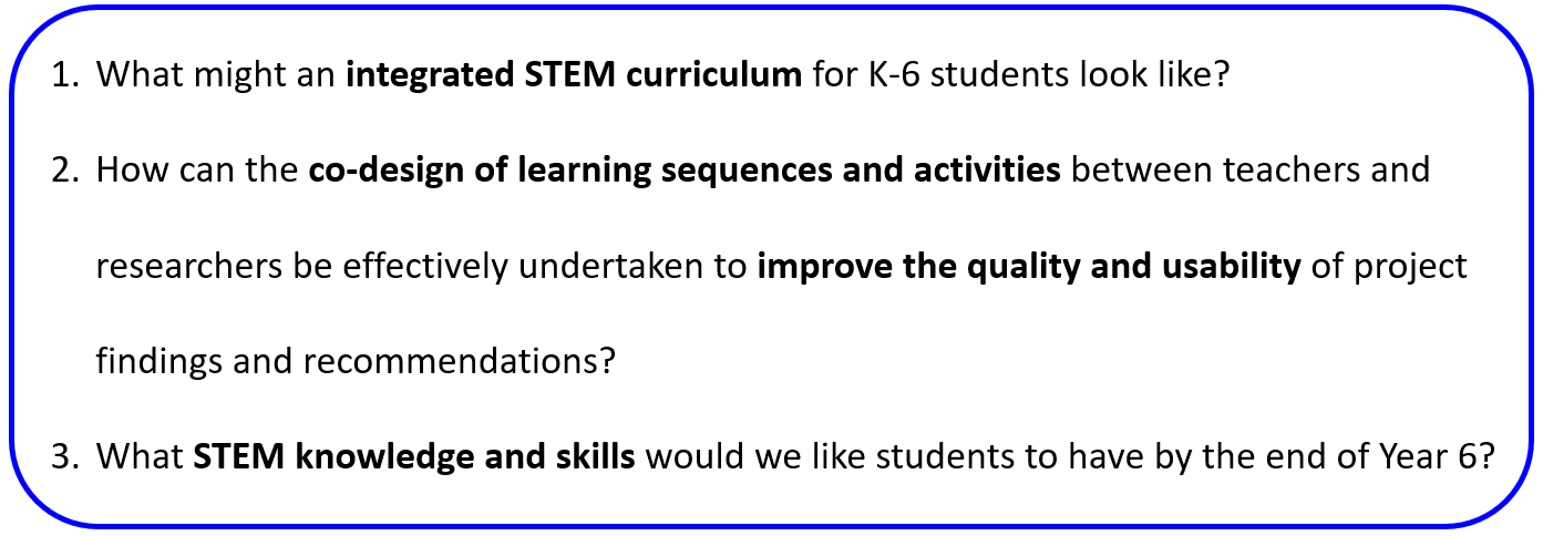 Although The SILO Project attempts to address the international focus on improving STEM education, it also seeks to address translation of research which is about bridging the gap between theory and practice. The three research questions are depicted in Figure 1.2.