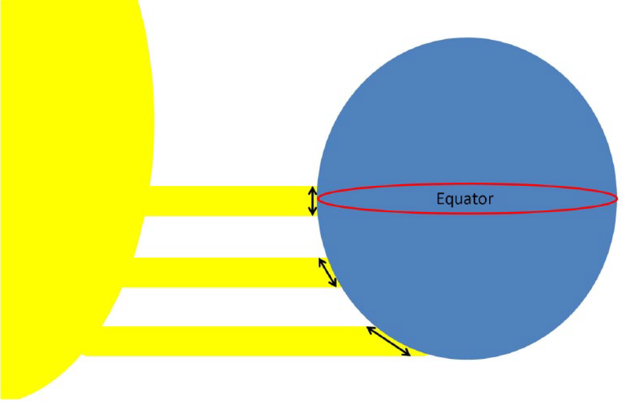 Because the Earth is spinning on its own axis, the Sun will shine on different parts of the world at different times during a 24 hour period. Accordingly, we use time zones based on the historical convention of calibrating these time zones in reference to Greenwich, England. The following image shows how various places are related to Greenwich Mean Time.