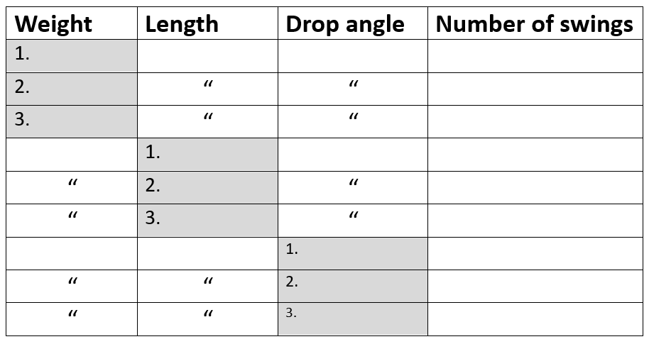 Measure the time of the swings. Which change(s) affect